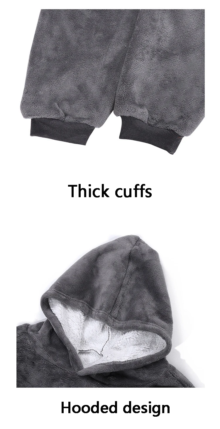Conçu en polaire épaisse et moelleuse, il combine le confort d’une couverture chaude et la praticité d’un vêtement d’intérieur oversize.