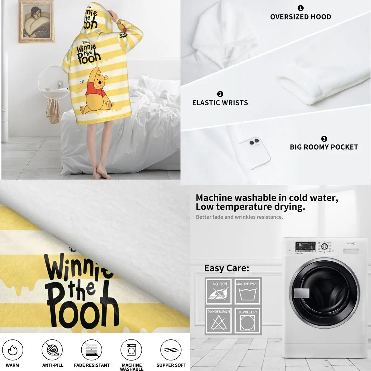 Plongez dans la douceur et la tendresse avec cette couverture à capuche Winnie l’Ourson 🧸💛.
